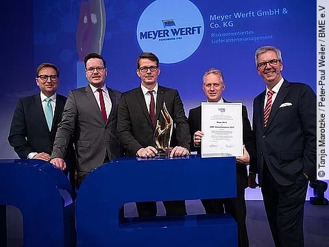 Mehr als 15 Millionen Einzelteile werden pro Schiff verbaut – 800 Lieferanten und Dienstleister müssen pro Neubau koordiniert werden. Ein zuverlässiger und eng vernetzter Lieferantenstamm ist dabei die Grundvoraussetzung für die langfristige Standortsicherung der familiengeführten Werft und ein erfolgreiches Agieren auf dem Markt. Das niedersächsische Unternehmen beschäftigt 3450 Mitarbeiter. Es erhält den diesjährigen BME-Innovationspreis für sein risikoorientiertes Lieferantenmanagementkonzept.